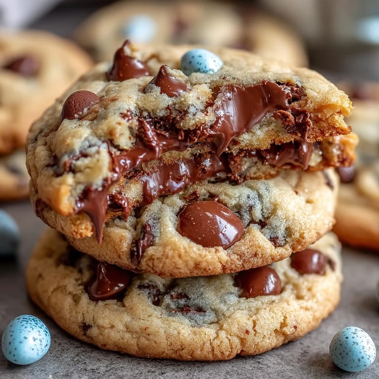 Pin It My kitchen smelled like melted butter and spring that afternoon when my daughter burst through the door with a bag of Cadbury Mini Eggs, convinced we should turn them into cookies before Easter arrived. I'd never combined candy and chocolate chips in the same cookie before, but watching her eyes light up at the idea made it feel like the most natural thing in the world. What emerged from the oven was pure magic—soft, chewy centers hiding pockets of chocolate and those beloved crunchy shells that everyone fights over. Now this recipe shows up in our house every April without fail, and honestly, I've started making them year-round when no one's looking.