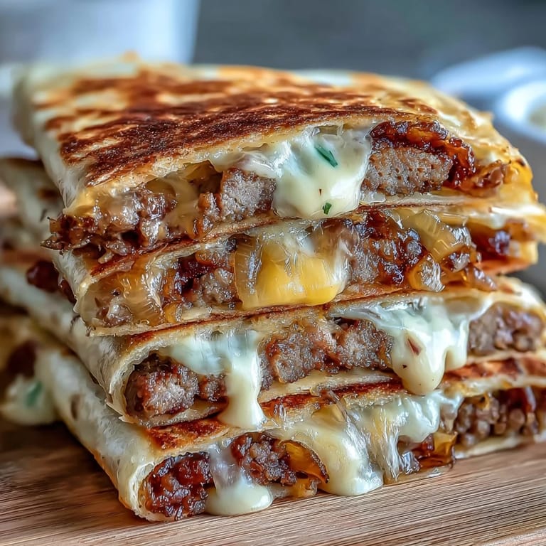 Pin It My friend Derek showed up at my kitchen one random Tuesday with a bag of groceries and a wild idea: what if we smashed burger patties right onto a griddle, piled them into a quesadilla, and topped it all with a tangy sauce? I thought he'd lost it. But twenty minutes later, I was biting into something that tasted like a burger and a quesadilla had the most delicious argument and somehow both won.