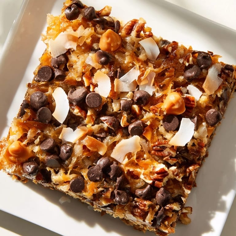 Pin It I was rummaging through my grandmother's recipe box one rainy afternoon when a splattered index card caught my eye. The title was smudged, but the ingredient list was unmistakable: graham crackers, condensed milk, chocolate chips, coconut, nuts. I baked a batch that same evening, and the smell alone brought my sister running downstairs. We burned our fingers pulling apart the first bar, still warm and gooey, laughing at our impatience. That night, Magic Cookie Bars earned their name in our house.