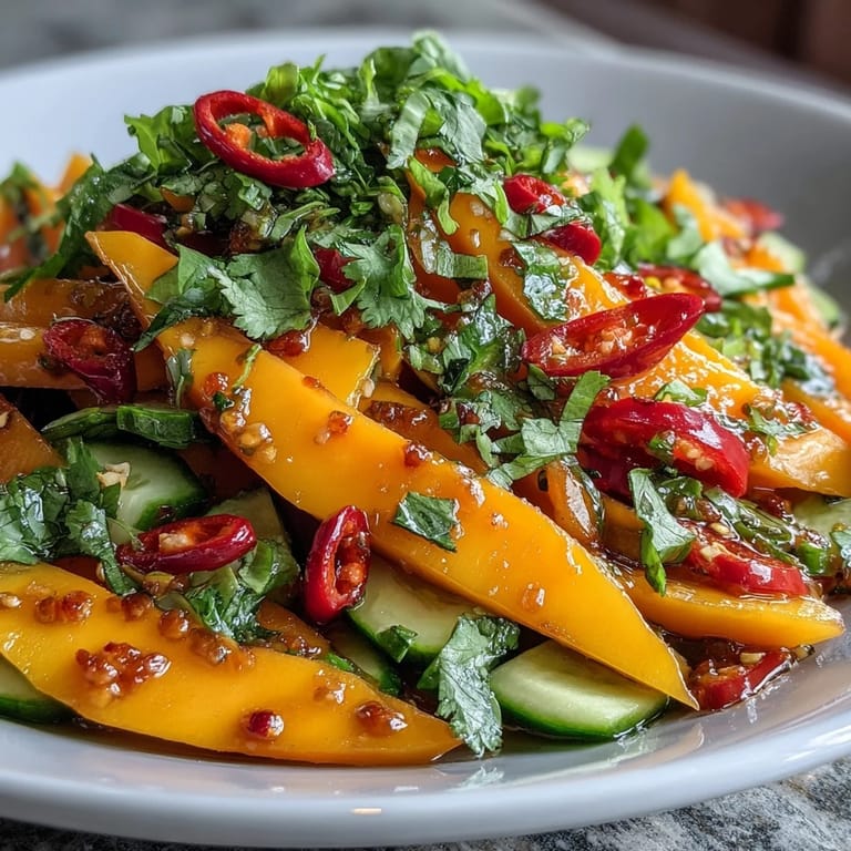 Pin It One sweltering afternoon, I stood in front of the fridge, staring at two golden mangoes that were hours away from being too ripe. I didn't want dessert. I craved something bright, cool, and sharp enough to wake up my taste buds. That's when I remembered a vendor in a Bangkok night market who tossed fruit and vegetables together with nothing but lime and a tiny bottle of fish sauce. I grabbed a cucumber, a bell pepper, and started slicing.