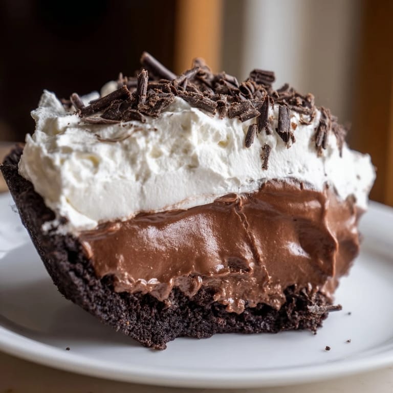 This pie actually improves after a day in the fridge—the flavors meld and the texture becomes even more luxurious—so you can make it a full day ahead without any guilt. Serve it with strong coffee or a glass of port wine; the acidity and warmth cut through the richness in a way that makes you want another slice. For garnish ideas, grate dark chocolate over the top with a microplane for those delicate shavings, or dust with cocoa powder for a simpler look that still feels intentional.