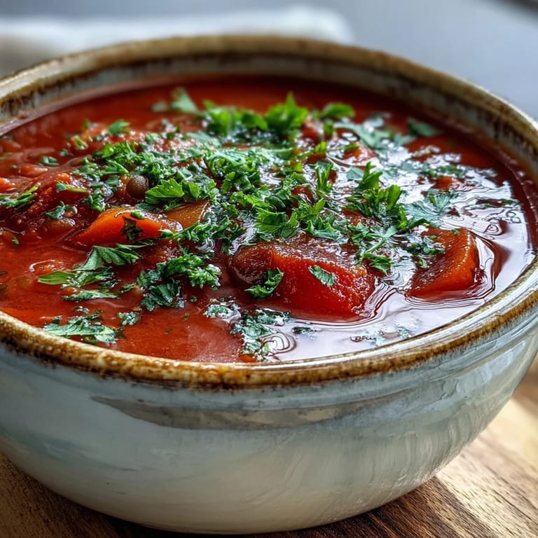 Pin It There is a specific peace that comes from watching a bay leaf swirl around in a red broth. I remember making this during a snowstorm when the power flickered and the only light came from the blue flame under the pot. We ate by candlelight and the soup tasted more like luxury than anything from a five star restaurant. It made me realize that some of my favorite moments are the ones that happen when things are stripped back to basics.